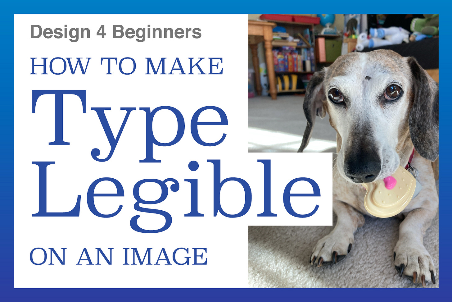 This time, it’s a little more challenging because you need the type to be legible if it’s on the background image. The image of the dog is complex, so there has to be some way to differentiate the text from the image.
