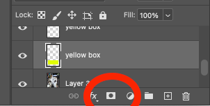 To have some additional fun, I introduced the concepts of layer masks. I wanted to create the illusion that the dog was holding the lower block in his mouth. To do this, make sure you have the correct layer selected, and click on the Mask icon at the bottom of the Layer panel.