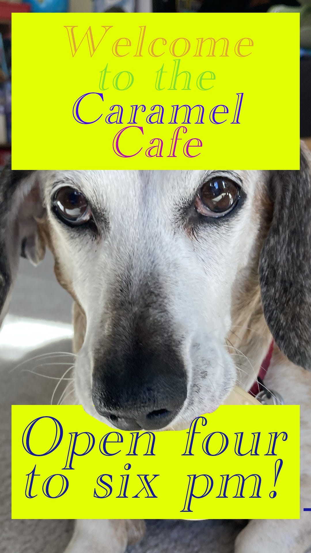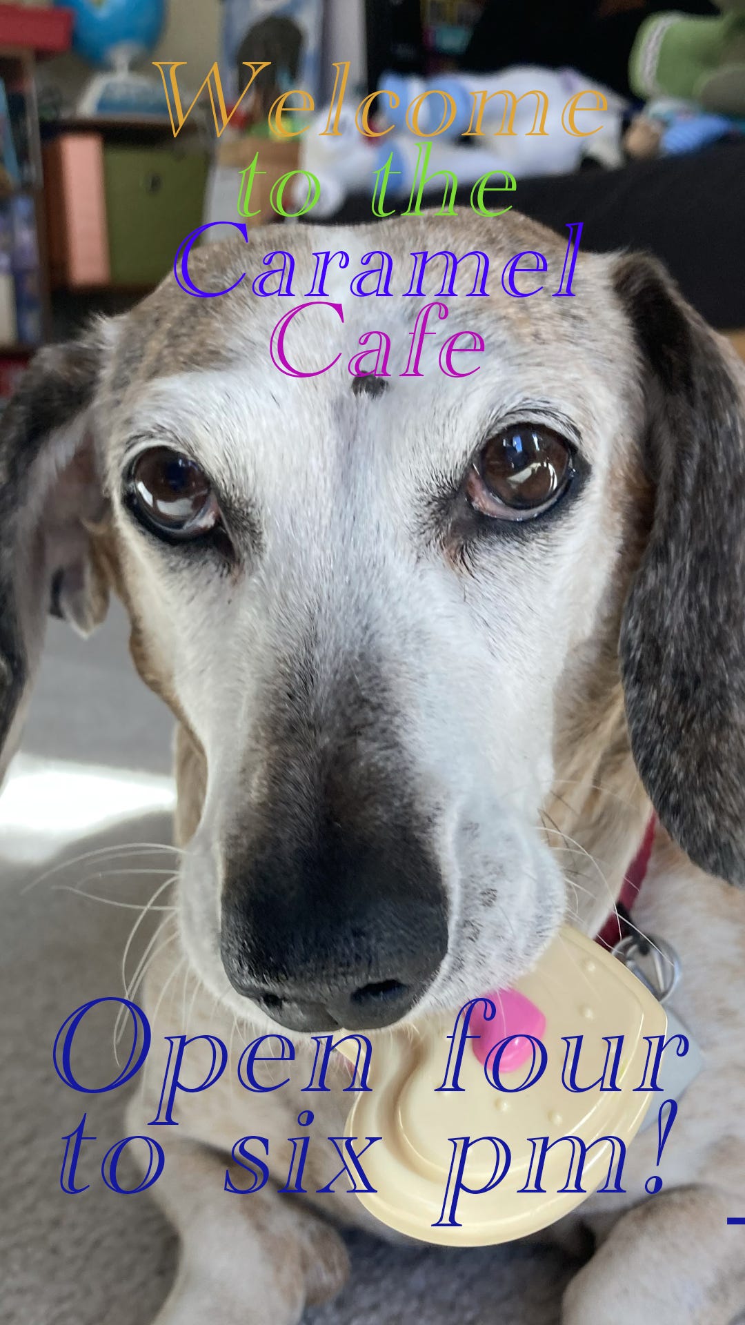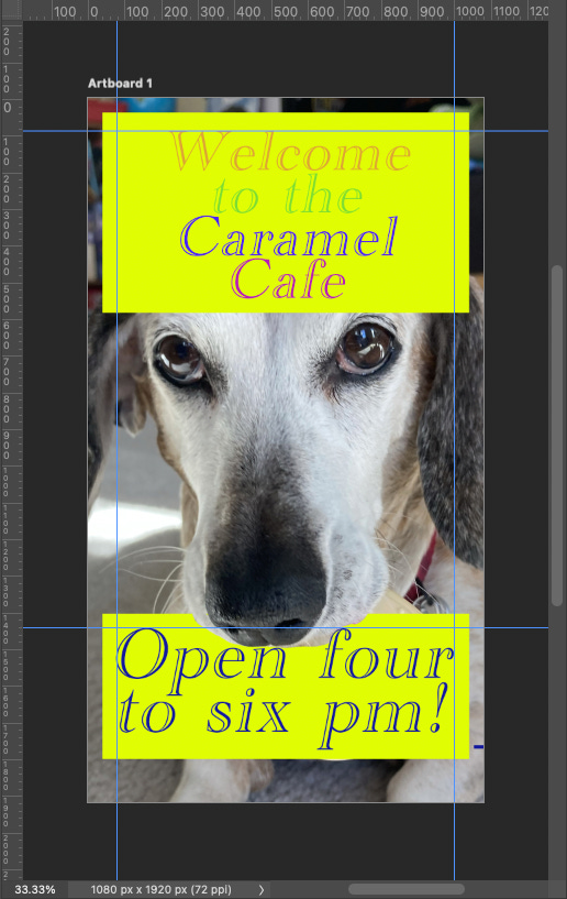 Once again I started with a photo of our family dog, Caramel. When my kids pretend they’re working at a restaurant, it’s called the Caramel Cafe. So we opened up a clean version of the dog’s photo and got to work.