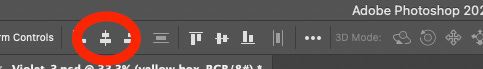 There are tools within Photoshop that help with alignment and spacing. As you see in the image above, the boxes are properly centered horizontally. There is a little alignment button at the top of the screen that can center or align objects within the canvas.